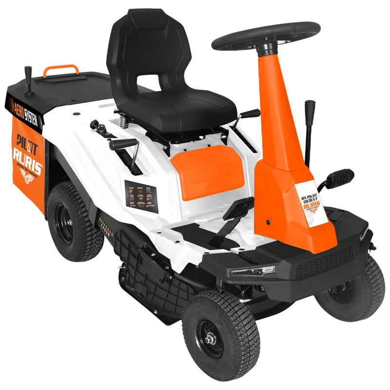 Tractor de Tuns Gazon RURIS RX Pilot 003 CVT 7.5 CP dispune de funcții de olectare, aruncare în spate, aruncare laterală, mulching, care optimizează întreținerea spațiilor verzi.